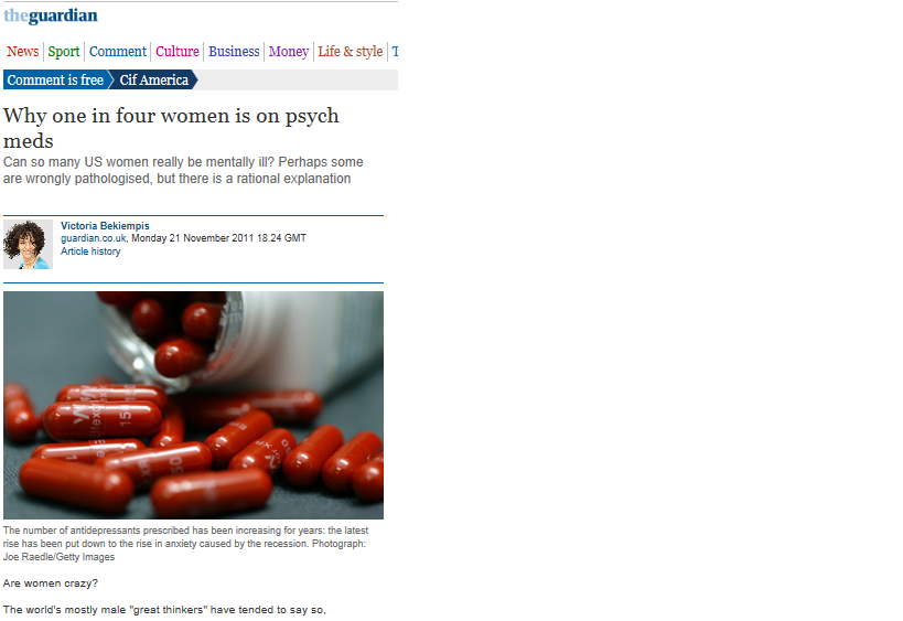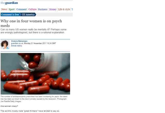 http://www.guardian.co.uk/commentisfree/cifamerica/2011/nov/21/one-in-four-women-psych-meds