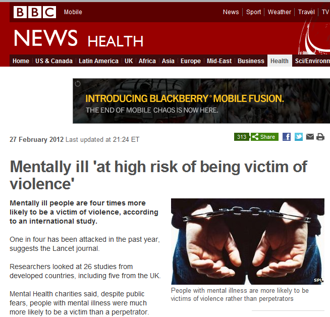 Report on BBC News website on the true story of people labelled with mental health diagnoses and violence..