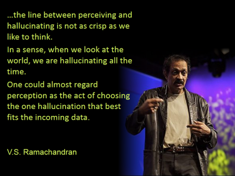 VS Ramachandran, in this link between perception and hallucination, has given us a new way to look at psychoses. This is mind-blowing but it feels good.