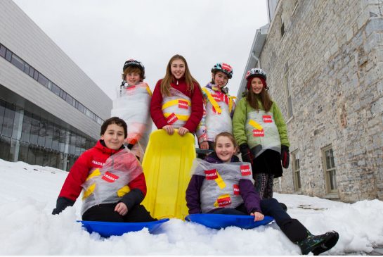 Not long ago, a group of Kingston kids went tobogganing decked out in eye-catching gear. On top of their parkas and boots, they were shrouded in layers of bubble wrap and covered in “Fragile” warning labels.