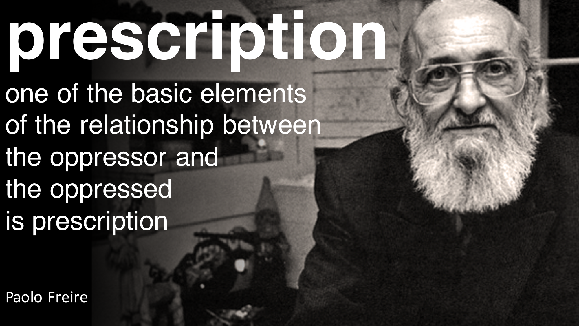 As Freire makes clear, prescription is a basic element of oppression.