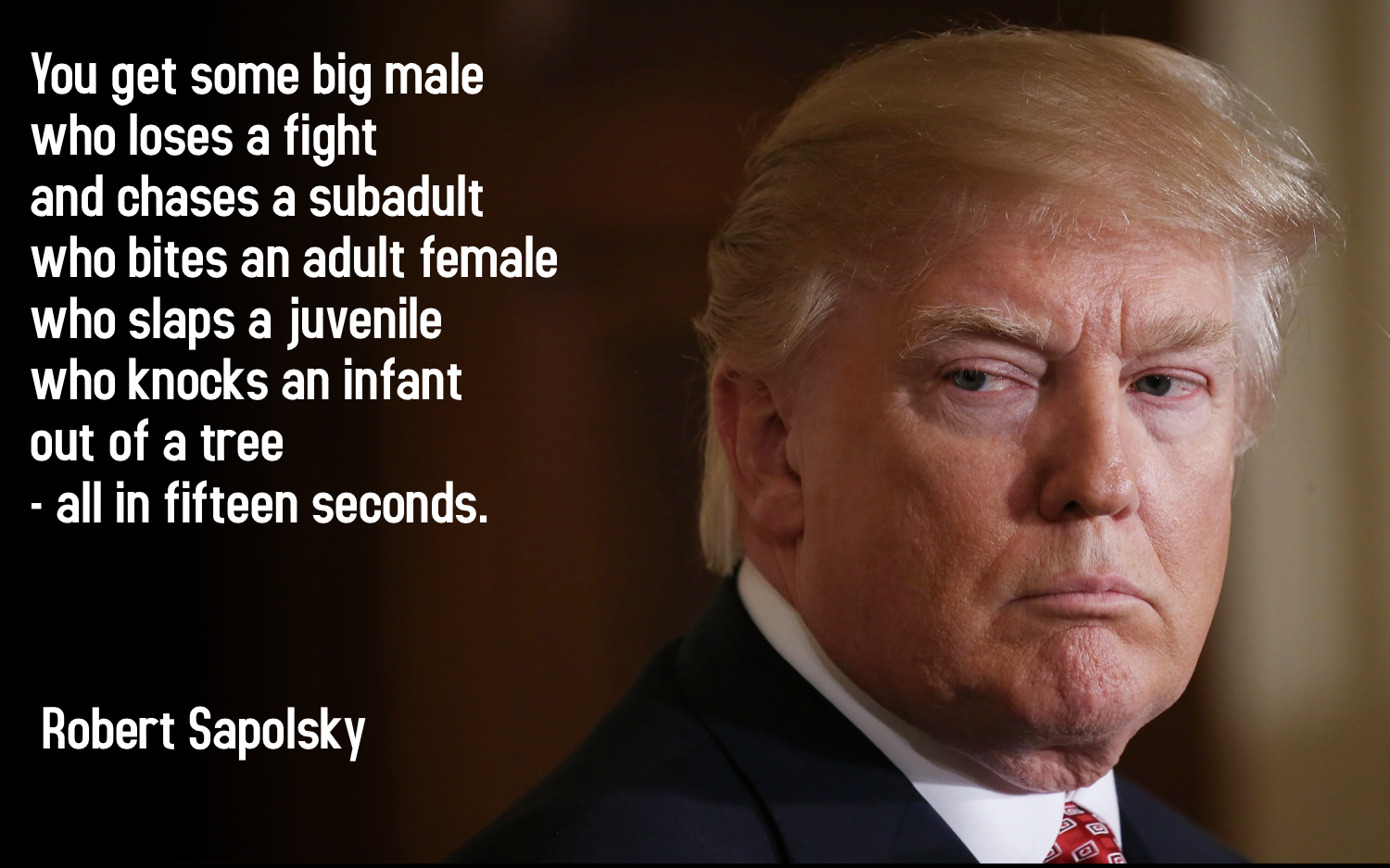 He is talking about baboons, the ones he’s observed for decades along with the effects of stress upon health and behaviour.