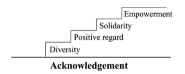 It can be argued that the opposite of objectifying should be subjectifying, not acknowledgement. However, as a foundation for an Empowerment Track it is not enough to recognize the other as someone different from yourself: she/he needs to be recognized as someone uniquely human and as worthy of respect as yourself.